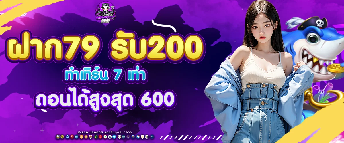 ฝาก 79 → รับเพิ่ม 121 = รวม 200 / ทำเทิร์น 7 เท่า / ถอนได้สูงสุด 600